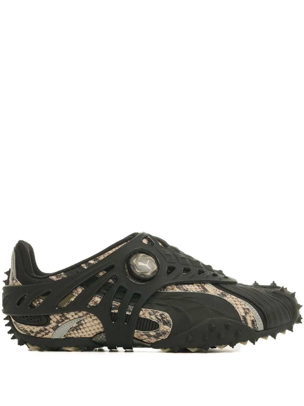 x A$ap Rocky gabbia snake sneakers Highlights - Taupe - Snake print - Cut-out detail - Round toe - Lug sole - Spike embellishment Imported Composition Lining: Fabric 100% Sole: Rubber 80%, Thermoplastic Polyurethane (TPU) 20% Outer: Calf Leather 47%, Polyurethane 39%, Fabric 14%