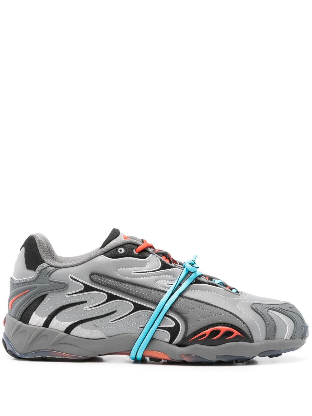 x A$AP Rocky Inhale flame-detail sneakers Highlights - Silver - Flame detailing - Lace-up fastening - Rubber outsole Imported Composition Outer: Fabric 100%, Polyurethane 100% Lining: Fabric 100% Sole: Rubber 100%