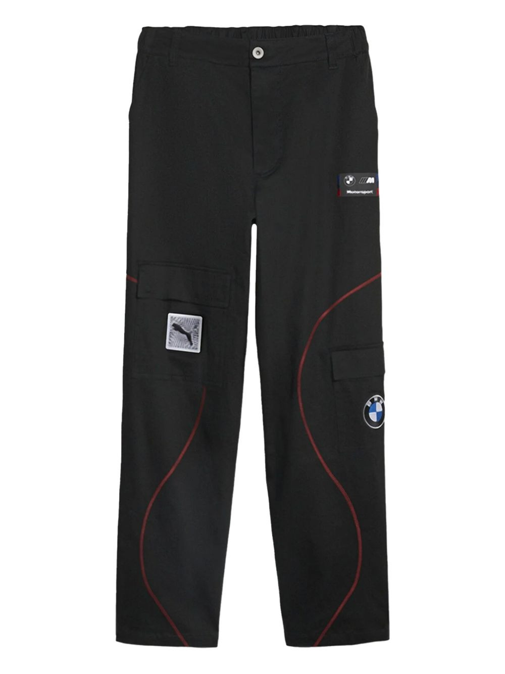 x BMW Motorsports Garage logo-patch trousers Highlights - Black - Back patch pocket - Stripe detail - Logo patch - Elasticated waistband Imported Composition Fabric 100% Washing instructions Read Manufacturer Guidelines