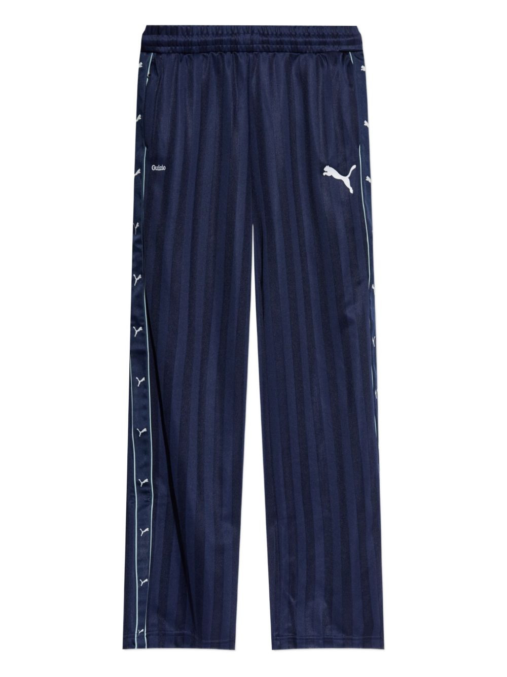 x Guizio striped logo-print pants Highlights - Blue - Striped - Logo detail - Side stripe - Button detail - Elasticated waistband - This is a limited edition piece. Imported Composition Polyester 100% Washing instructions Read Manufacturer Guidelines
