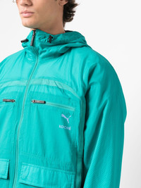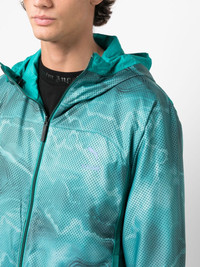x Koche reversible zip-up hooded jacket Highlights - Turquoise blue-green - Reversible - Logo print at the chest - All-over graphic print lining - Tonal stitching - Drawstring hood - High neck - Front two-way zip fastening - Long sleeves - Elasticated cuffs - Two zip-fastening chest pockets - Two front flap pockets - Drawstring hem Imported Composition Lining: Polyester 100% Outer: Nylon 100% SIZE & FIT Model measurements Height 6 ft 2 in(1.88 m) Bust/Chest 37.79 in(96 cm) Hips 35.82 in(91 cm) Waist 29.92 in(76 cm) FittingInformation Designed for a boxy fit, intended for a loose fit throughout The elasticated hem allows for movement and a comfortable fit Made from a lightweight non-stretch fabric This piece fits true to size – take your usual size Washing instructions Machine Wash