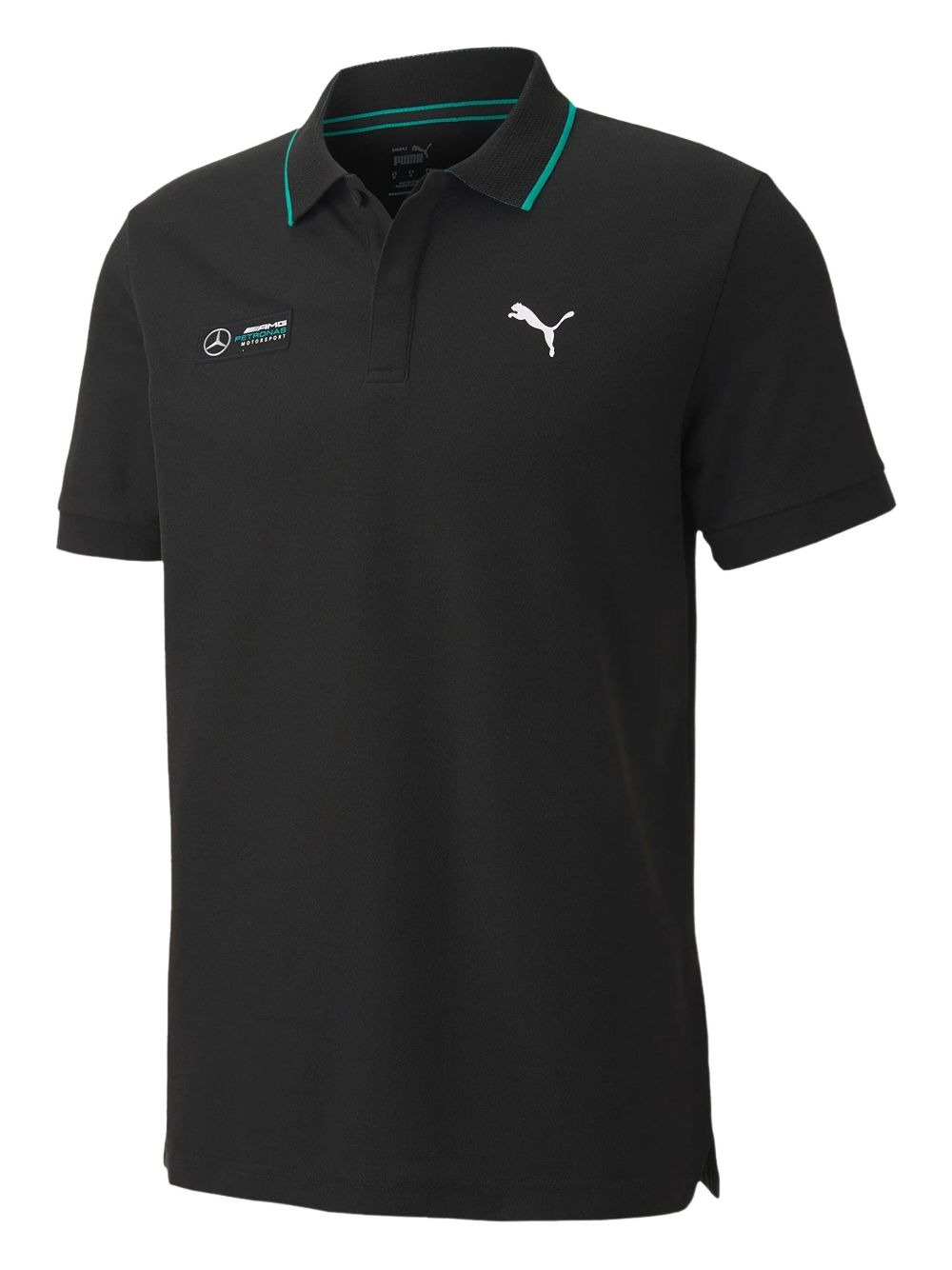 x Mercedes AMG logo-print polo shirt Highlights - Black - Logo detail - Short sleeves - Polo collar - Stripe detail Imported Composition Fabric 100% Washing instructions Read Manufacturer Guidelines