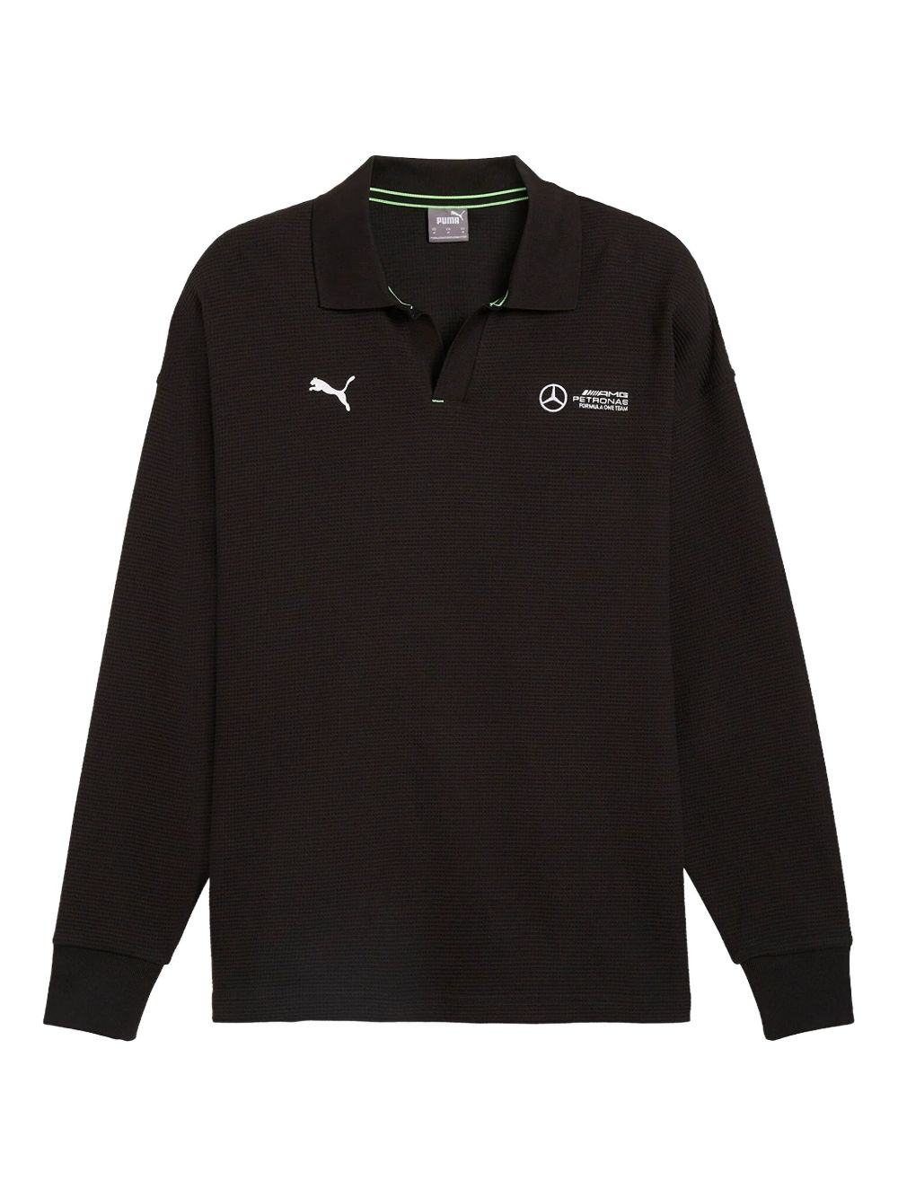 x Mercedes AMG Petronas F1 Team logo-embroidered polo shirt Highlights - Black - Long sleeves - Polo collar - Logo embroidery - Ribbed cuffs Imported Composition Cotton 77%, Polyester 23% Washing instructions Read Manufacturer Guidelines