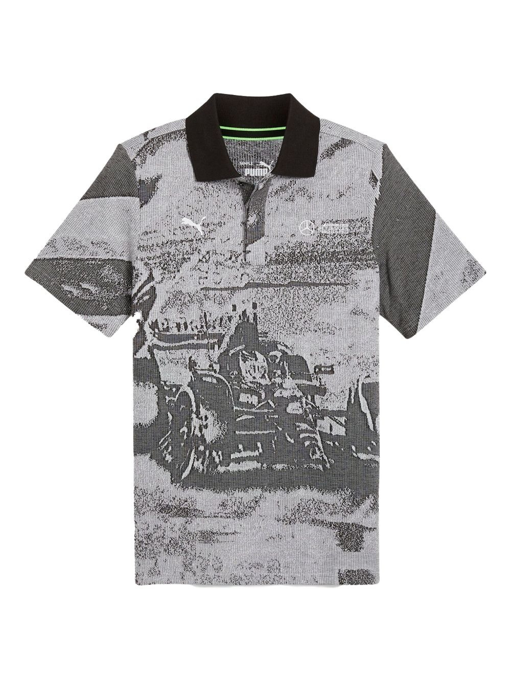 x Mercedes AMG Petronas F1 Team patterned-jacquard polo shirt Highlights - Black - Patterned jacquard - Short sleeves - Polo collar - Logo embroidery Imported Composition Cotton 80%, Recycled Cotton 20% Washing instructions Read Manufacturer Guidelines