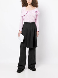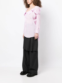 asymmetric-neck button-up shirt pink cut-out detailing asymmetric neck off-centre front button fastening rear tie fastening long sleeves curved hem Imported Composition Body: TENCEL™ 82%, Polyester 18% SIZE & FIT Model measurements Height 5 ft 10 in(1.78 m) Bust/Chest 33.46 in(85 cm) Hips 35.43 in(90 cm) Waist 24.4 in(62 cm) FittingInformation This piece fits true to size. We recommend you get your regular size Cut for a loose fit Made with a mid-weight non-stretch fabric Washing instructions Dry Clean Only