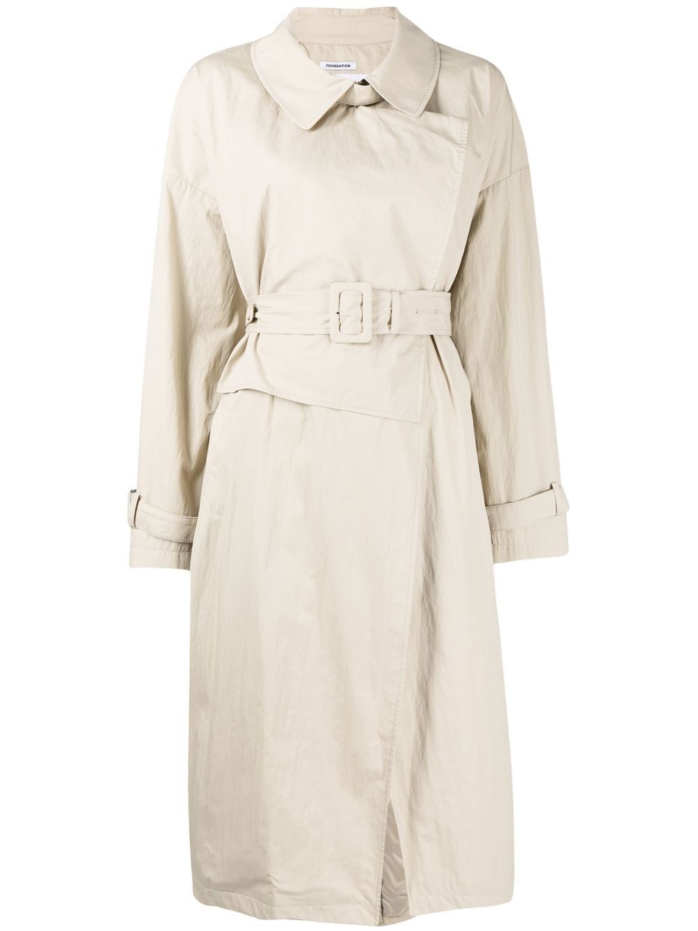 belted trench coat light beige cotton blend belted waist long sleeves wide notch lapels Imported Composition Body: Cotton 69%, Nylon 31% SIZE & FIT Model measurements Height 5 ft 11 in(1.8 m) Bust/Chest 28.34 in(72 cm) Hips 35.43 in(90 cm) Waist 23.62 in(60 cm) FittingInformation This piece fits true to size. We recommend you get your regular size Cut for a loose fit. Comes with an adjustable belt for a flexible fit at the waist Made with a mid-weight non-stretch fabric