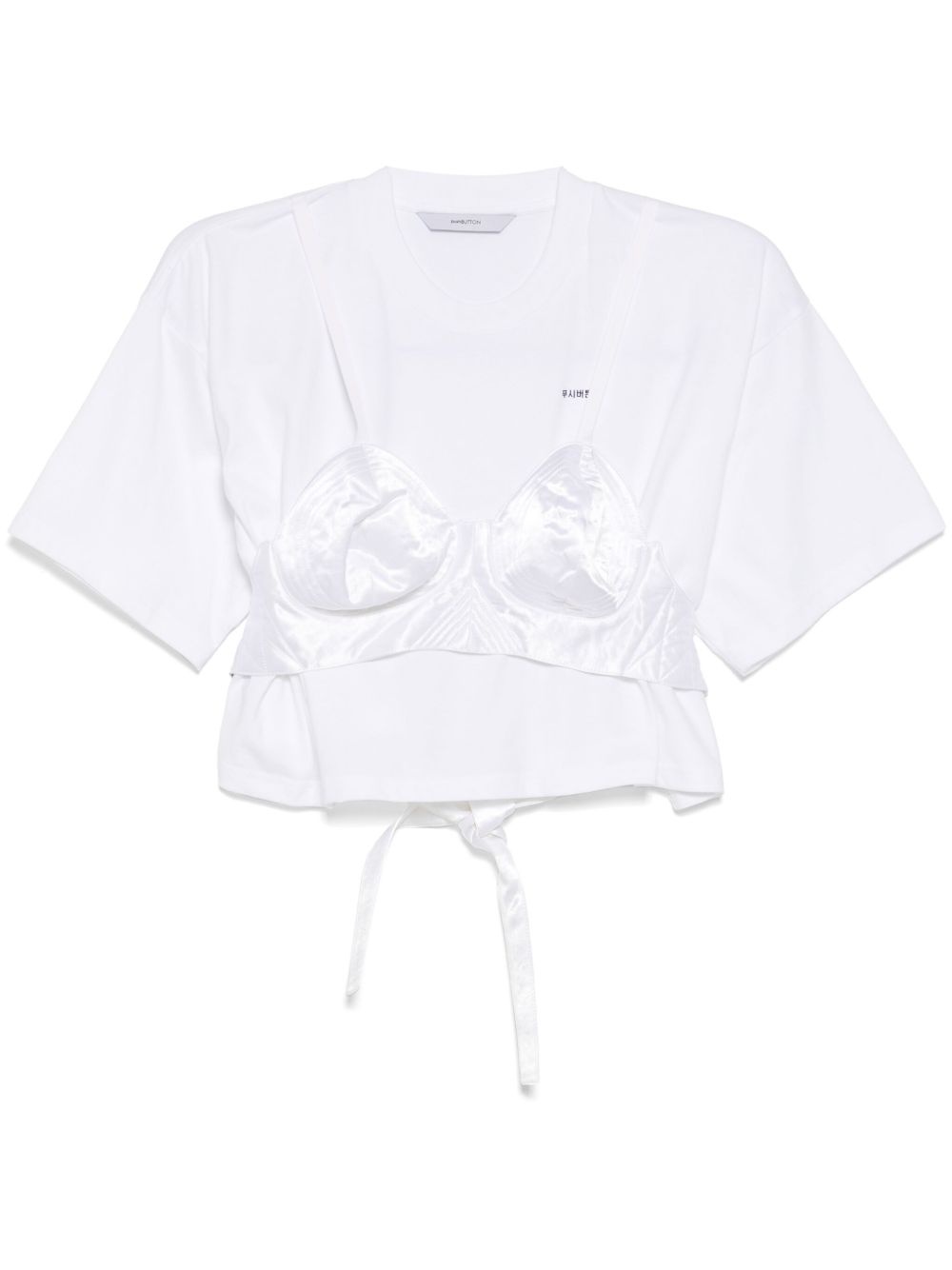 bra point cropped top Highlights - White - Crew neck - Straight hem Imported Composition Cotton 100% Outer: Acrylic 100% Washing instructions Dry Clean Only