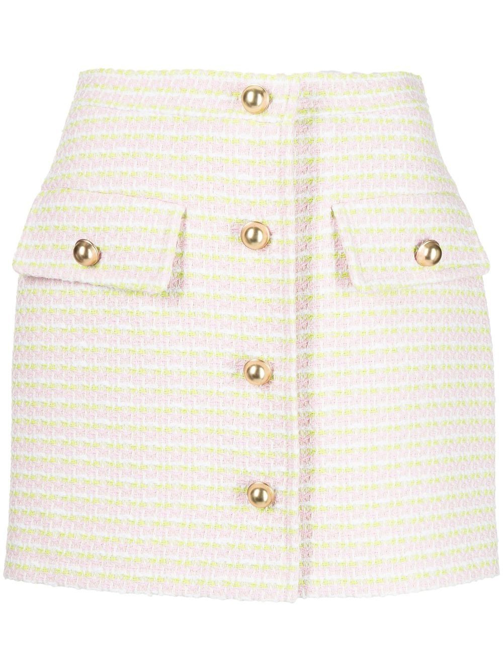 button-up mini skirt light pink/multicolour cotton blend gold-tone hardware monogram print button fastening two button-fastening pockets A-line Imported Composition Body: Cotton 98%, Polyester 2% Washing instructions Dry Clean Only