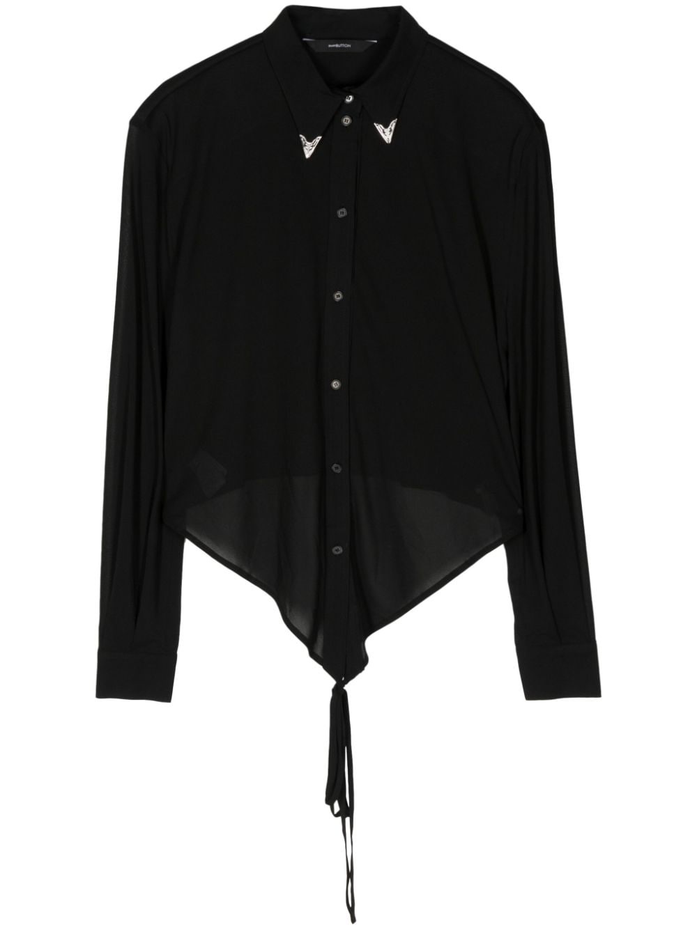 collar-detail strap-detail shirt Highlights - Black - Collar detailing - Classic collar - Long sleeves - Front button fastening - Buttoned-cuff sleeves - Strap detailing - High-low hem Imported Composition Polyester 100%