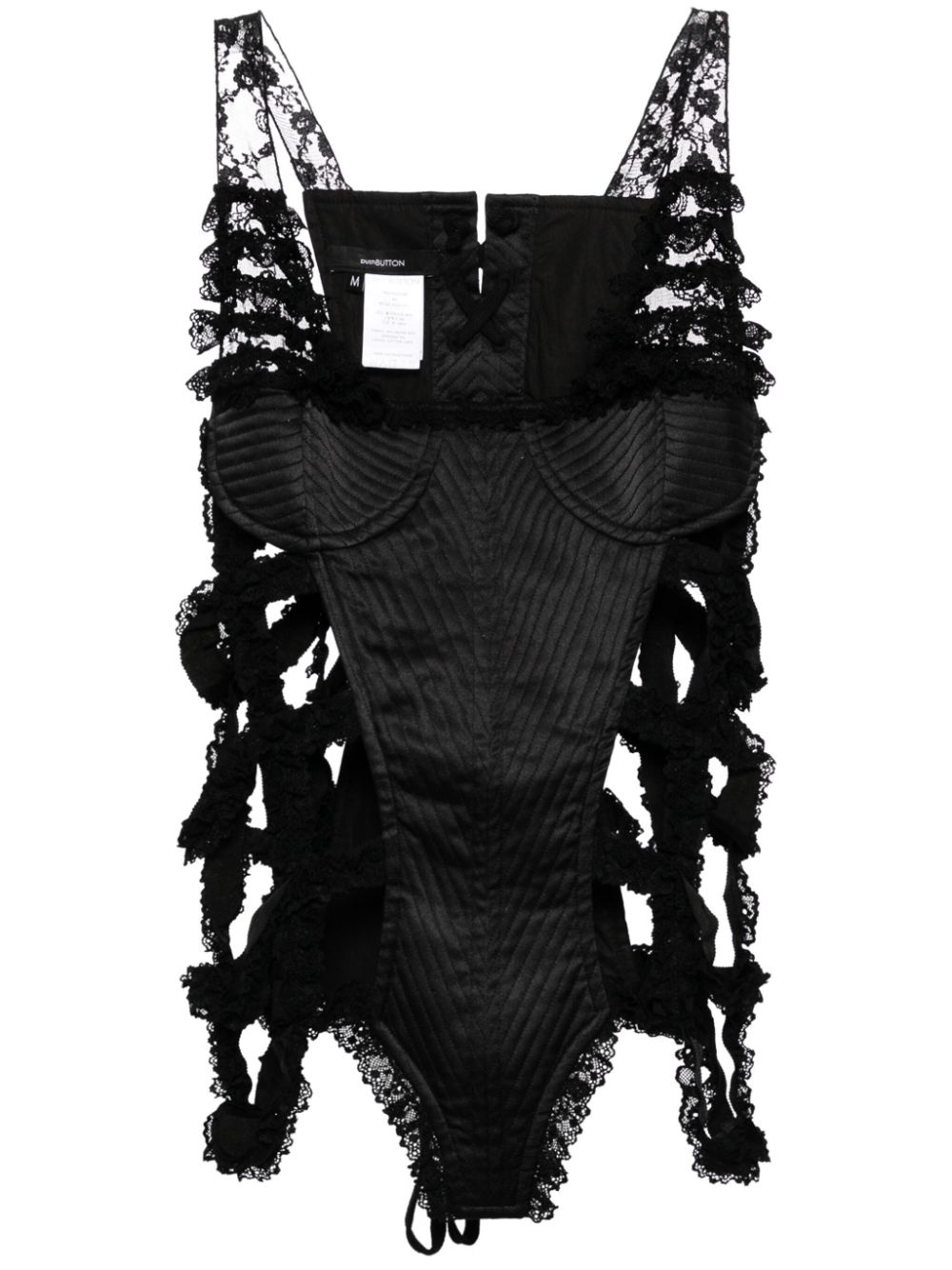 lace embroidery sleeveless blouse Highlights - Black - Rear tie fastening - Scoop neck - Cut-out detailing - Lace detailing - Lace embroidery - Lace trim - Lace-up detailing - Sleeveless - Corset style Imported Composition Lining: Cotton 100% Outer: Polyester 95%, Spandex/Elastane 5%