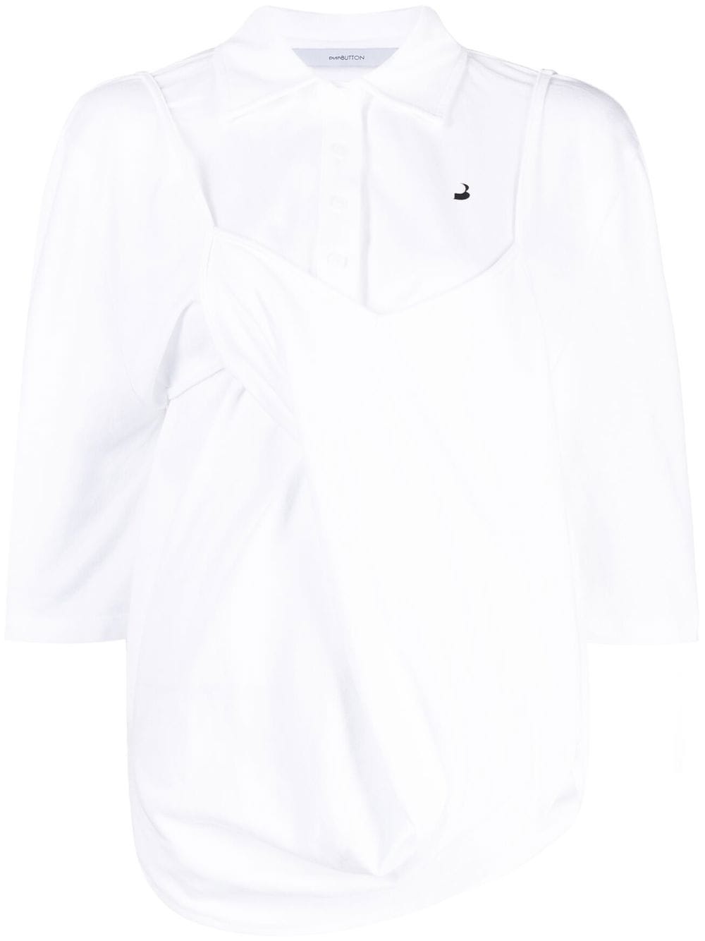 layered half-sleeve shirt white cotton layered design embroidered logo at the chest classic collar front button fastening half-length sleeves asymmetric hem Imported Composition Body: Cotton 100% SIZE & FIT Model measurements Height 5 ft 10 in(1.78 m) Bust/Chest 33.46 in(85 cm) Hips 35.43 in(90 cm) Waist 24.4 in(62 cm) FittingInformation This piece fits true to size. We recommend you get your regular size Cut for a loose fit Made with a mid-weight fabric Washing instructions Dry Clean Only