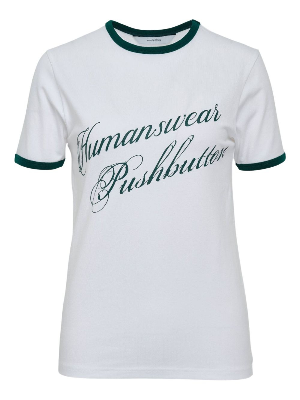 logo-print T-shirt Highlights - White - Short sleeves - Crew neck - Straight hem - Embroidered lettering Imported Composition Cotton 93%, Spandex/Elastane 7% Washing instructions Read Manufacturer Guidelines