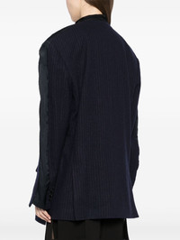 raw edge jacket Highlights - Navy blue - Cotton-wool blend - Raw edge - Stripe detailing - Patchwork detailing - Jetted chest pocket - Two front flap pockets - Rear slit - Button fastening - Full lining Imported Composition Outer: Cotton 53%, Wool 47% Lining: Rayon 100% SIZE & FIT Model measurements Height 5 ft 10 in(1.77 m) Bust/Chest 27.95 in(71 cm) Hips 34.64 in(88 cm) Waist 22.83 in(58 cm) FittingInformation Designed for an oversized fit, offering additional room throughout The internal shoulder pads offer a structured shape Made from a midweight non-stretch fabric
