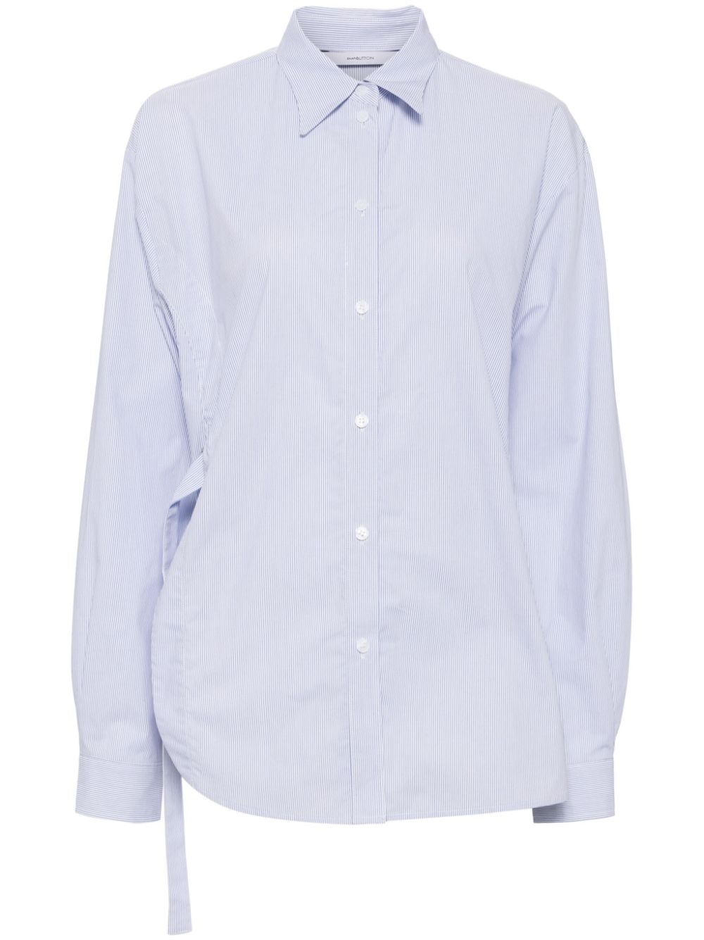 striped oversized shirt Highlights - Blue/white - Cotton - Pinstripe pattern - Side slit - Poplin texture - Classic collar - Long sleeves - Buttoned cuffs - Front button fastening - Side buckle fastening - Curved hem Imported Composition Cotton 100% SIZE & FIT Measurement BUST 44.88 in(114 cm) LENGTH 25.59 in(65 cm) Shoulder Width 20.07 in(51 cm) SLEEVE LENGTH 24.8 in(63 cm)