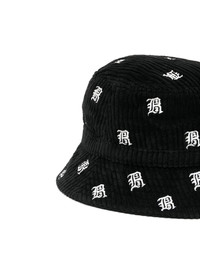 all-over embroidered-logo bucket hat jet black cotton all-over logo embroidery flat peak wide brim Imported Composition Cotton 100% SIZE & FIT Measurement BRIM 2.75 in(7 cm) CIRCUMFERENCE 23.62 in(60 cm)