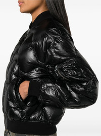 band-collar padded jacket Highlights - Black - Feather down - Padded design - High-shine finish - Ribbed band collar - Long sleeves - Sleeve zip pocket - Two button-fastening pockets - Straight hem - Ribbed cuffs and hem Imported Composition Lining: Nylon 100%, Feather Down 100% Outer: Nylon 100% SIZE & FIT Model measurements Height 5 ft 11 in(1.8 m) Bust/Chest 30.7 in(78 cm) Hips 35.03 in(89 cm) Waist 24.4 in(62 cm) FittingInformation Designed to be unstructured, offering a loose fit throughout The ribbed hem offers a close, comfortable fit Made from a quilted non-stretch fabric, giving it no natural elasticity This piece fits true to size – take your usual size
