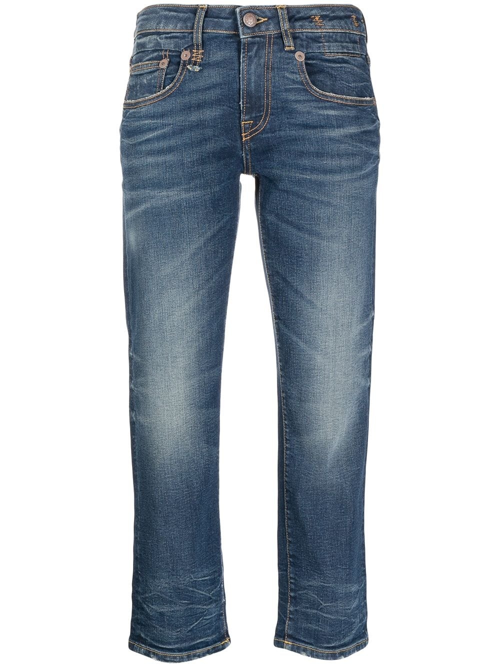 Boy straight-leg cropped jeans R13's jeans are expertly crafted in Italy with unique cutting-edge silhouettes that represent the label's irreverent spirit. The Boy jeans are a relaxed style, cut with a straight leg to sit low at the waist for contemporary appeal. Made in Italy Composition Body: Cotton 92%, Spandex/Elastane 8% Washing instructions Machine Wash