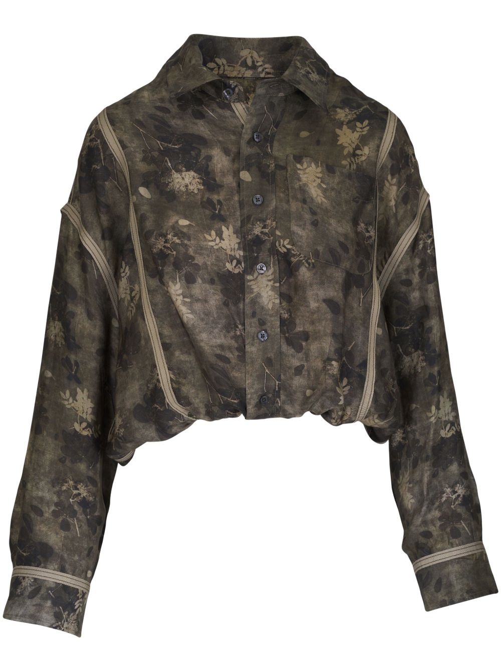 TAPED CROSSOVER BUBBLE SHIRT - OLIVE FLORAL