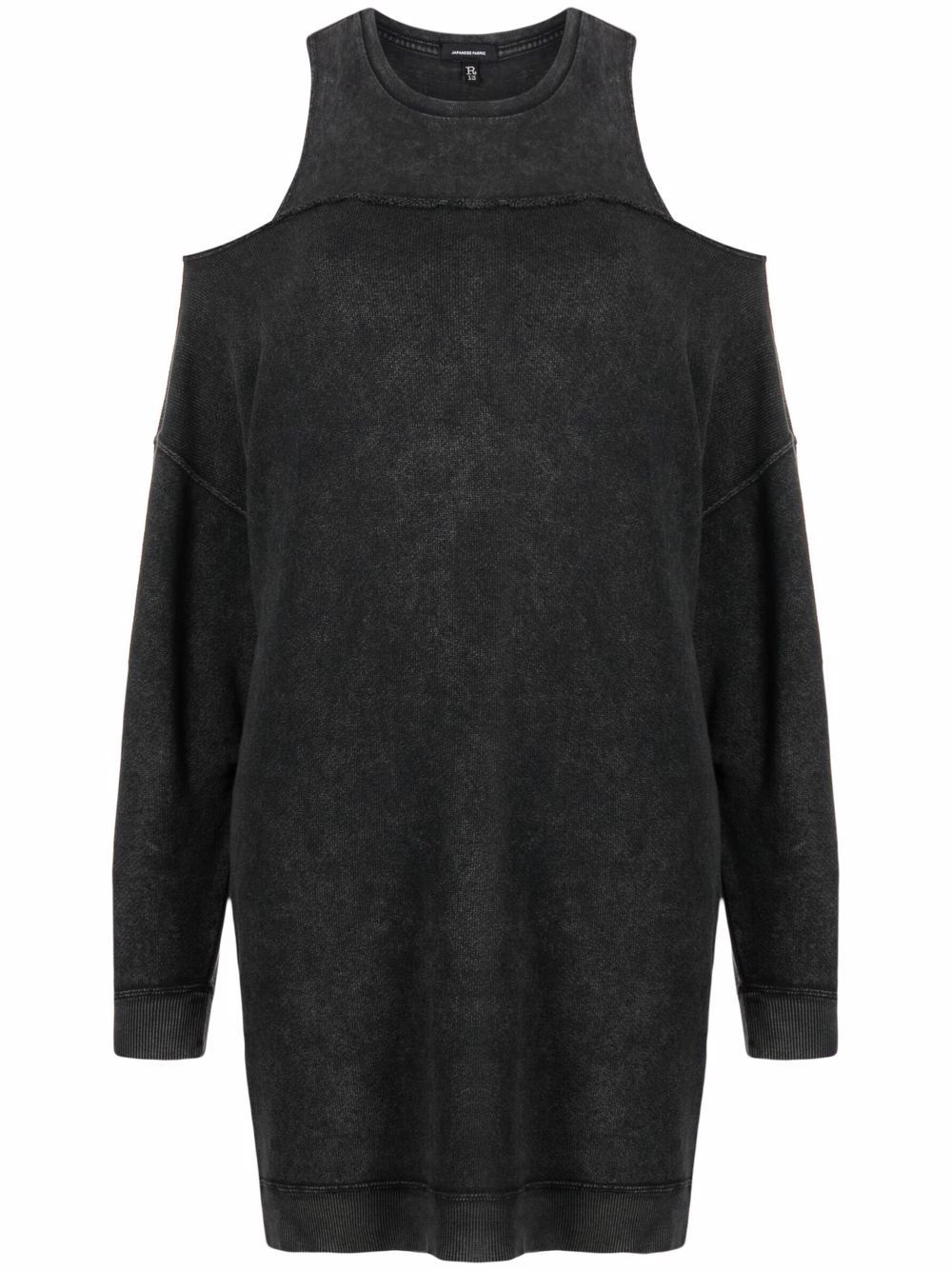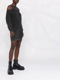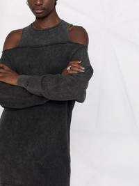 cold-shoulder dress acid black cotton ribbed detailing cold-shoulder design round neck long sleeves Imported Composition Cotton 100% SIZE & FIT Model measurements Height 5 ft 10 in(1.77 m) Bust/Chest 32.28 in(82 cm) Hips 35.03 in(89 cm) Waist 25.19 in(64 cm) Measurement Shoulder Width 24.01 in(61 cm) LENGTH 32.28 in(82 cm) WAIST 35.43 in(90 cm) BUST 45.66 in(116 cm) FittingInformation This piece fits true to size. We recommend you get your regular size Cut for a loose fit Made with a mid-weight fabric Washing instructions Hand Wash