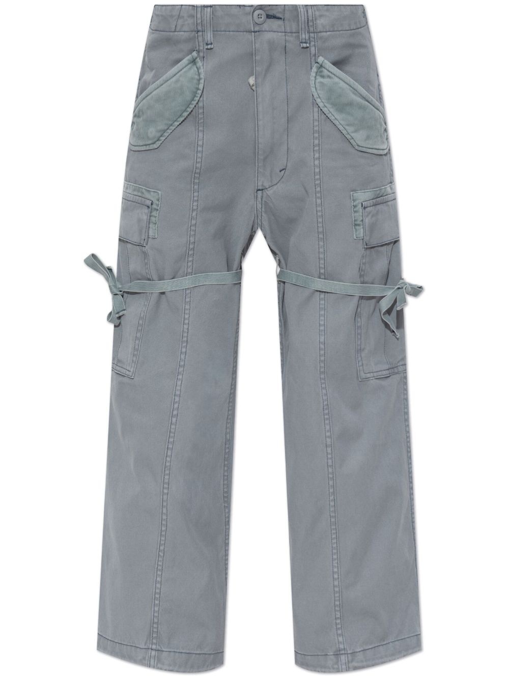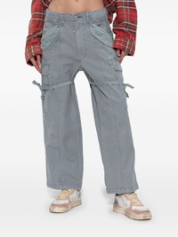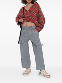 cropped cargo trousers Highlights - Ice blue - Front button and zip fastening - Belt loops - Multiple cargo pockets - Strap detailing Imported Composition Cotton 100%