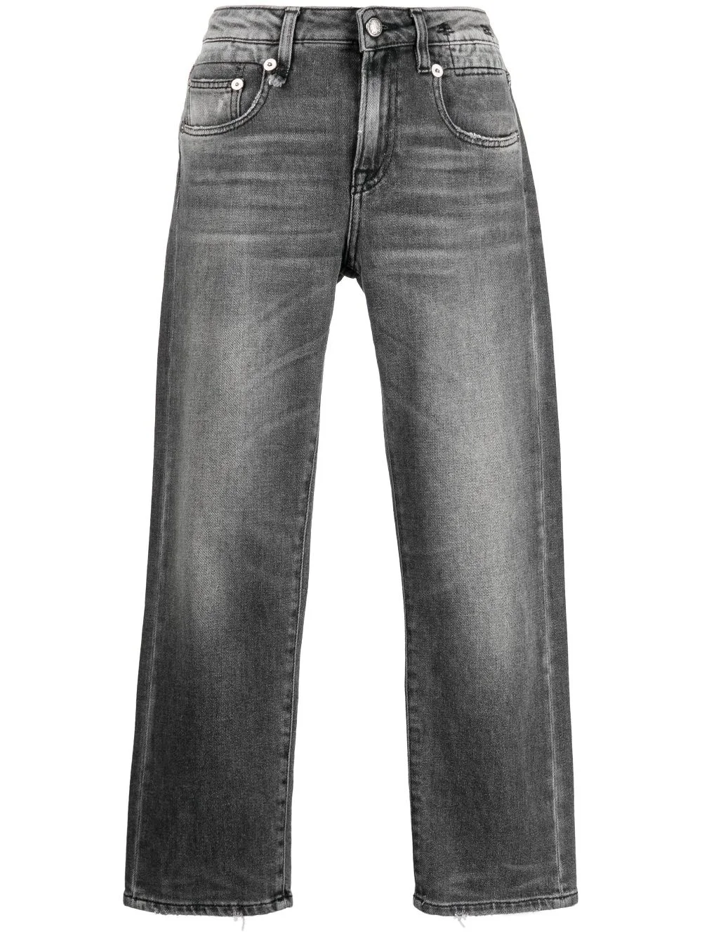 distressed-effect cropped jeans Highlights - Grey - Stretch-cotton - Denim - Stonewashed - Crinkled finish - Logo patch to the rear - Belt loops - Front button and zip fastening - Low-rise - Straight leg - Cropped leg - Classic five pockets Made in Italy Composition Body: Cotton 92%, Elastomultiester 8% Calf Leather 100% SIZE & FIT Model measurements Height 5 ft 10 in(1.77 m) Bust/Chest 31.49 in(80 cm) Hips 35.43 in(90 cm) Waist 25.19 in(64 cm) FittingInformation Designed for a slim boyfriend fit, these jeans allow for a close fit at the waist, offering a comfortable fit Cropped in length Constructed from stretch denim, this piece offers a stretch fit with durability This piece fits true to size – take your usual size Washing instructions Machine Wash