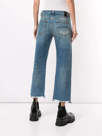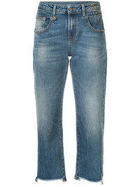 cropped straight-leg jeans Blue cotton blend cropped straight-leg jeans from R13 featuring a cropped length, a straight leg, a button fastening, a waistband with belt loops and a five pocket design. Made in Italy Composition Cotton 98%, Spandex/Elastane 2% SIZE & FIT Model measurements Height 5 ft 10 in(1.78 m) Bust/Chest 33.46 in(85 cm) Hips 36.22 in(92 cm) Waist 23.22 in(59 cm) Measurement FRONT RISE 8.66 in(22 cm) INSIDE LEG 25.59 in(65 cm) HIPS 33.85 in(86 cm) WAIST 29.13 in(74 cm) FittingInformation This piece fits true to size. We recommend you get your regular size Cut for a loose fit Designed to be fitted at the waist and hips, loose over the leg Made with a mid-weight stretch fabric Washing instructions Machine Wash