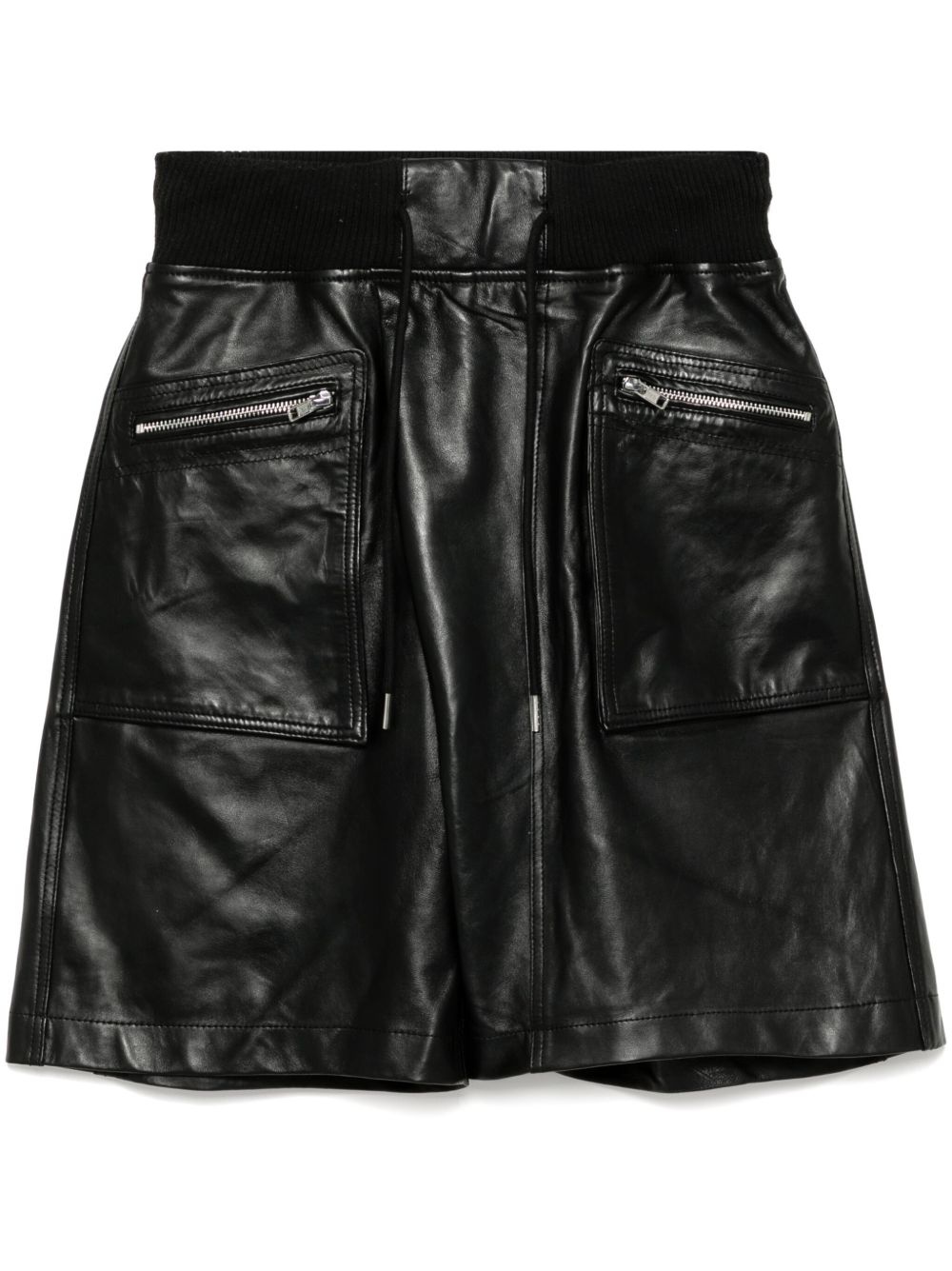 crossover leather shorts Highlights - Black - Ribbed drawstring waistband - Two zip-fastening pockets Imported Composition Lamb Skin 100% SIZE & FIT Model measurements Height 5 ft 9 in(1.76 m) Bust/Chest 31.1 in(79 cm) Hips 35.03 in(89 cm) Waist 24.4 in(62 cm) FittingInformation Designed for a loose fit, offering comfort and movement when worn The elasticated waist allows for a comfortable fit Soft leather has a supple and smooth construction offering some flexibility