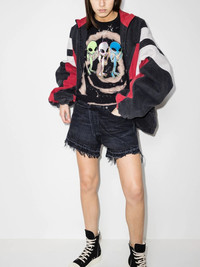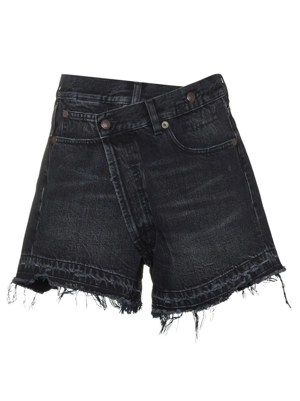 crossover-waist raw-hem shorts R13's rebellious rock'n'roll aesthetic is inspired by the Gadsden flag and its 'Don't tread on me' motto. That is encapsulated in these asymmetric shorts, defined by their crossover waistband for a unique look. Made in Italy Composition Cotton 100% SIZE & FIT Model measurements Height 5 ft 11 in(1.8 m) Bust/Chest 31.49 in(80 cm) Hips 36.22 in(92 cm) Waist 25.59 in(65 cm) FittingInformation This piece fits true to size. We recommend you get your regular size Cut for a loose fit Made with a mid-weight non-stretch fabric Washing instructions Machine Wash
