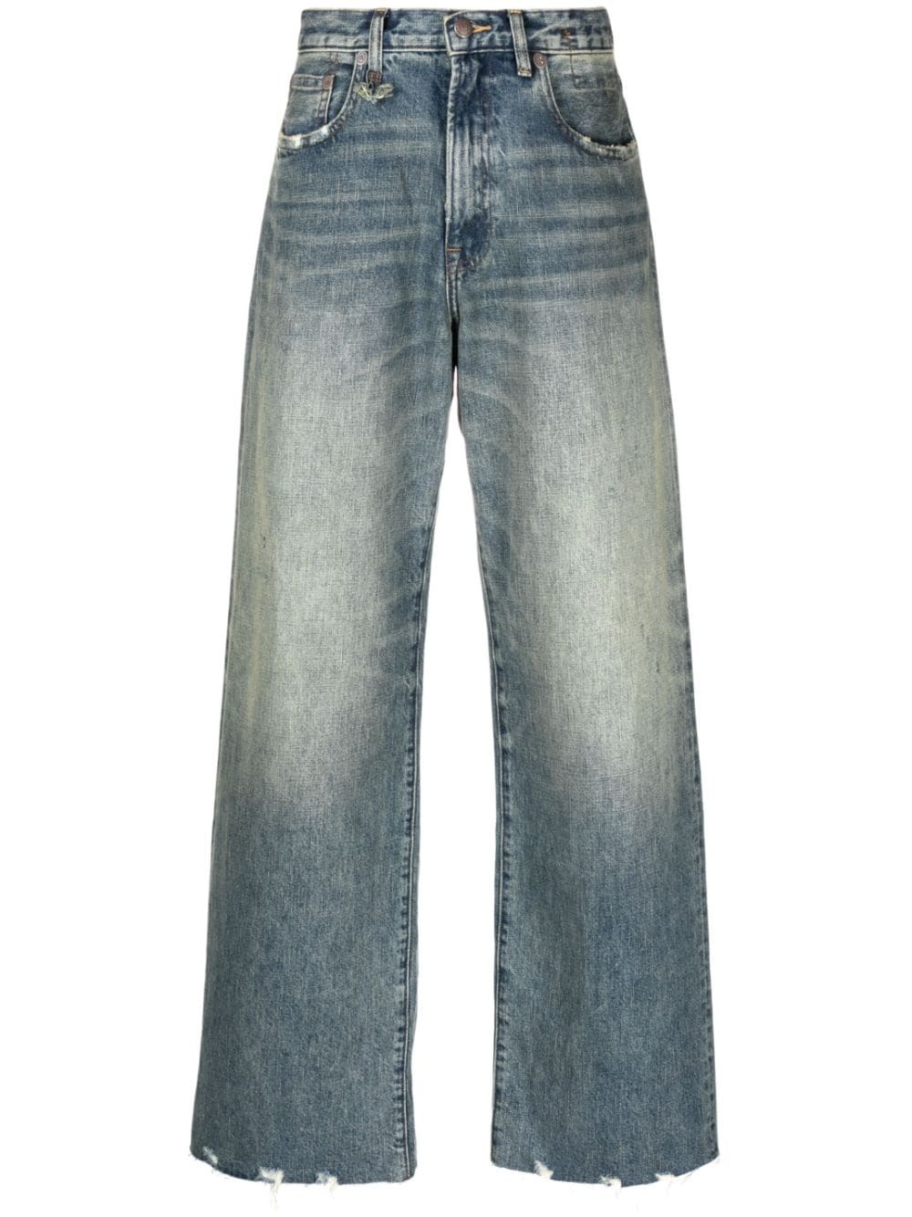 D'arcy high-rise wide-leg jeans These D'arcy jeans from R13 are finished with a relaxed stonewash finish that is accentuated by their laidback wide-leg silhouette. Highlights - Indigo blue - Cotton - Washed denim - Distressed finish - Whiskering effect at the thighs - Logo patch to the rear - Decorative stitching - Wide leg - High-rise - Concealed fly and button fastening - Belt loops - Classic five pockets - Raw-cut hem Imported Composition Cotton 100%, Calf Leather 100% SIZE & FIT Measurement FRONT RISE 12.2 in(31 cm) HIPS 41.73 in(106 cm) WAIST 32.28 in(82 cm) Washing instructions Machine Wash