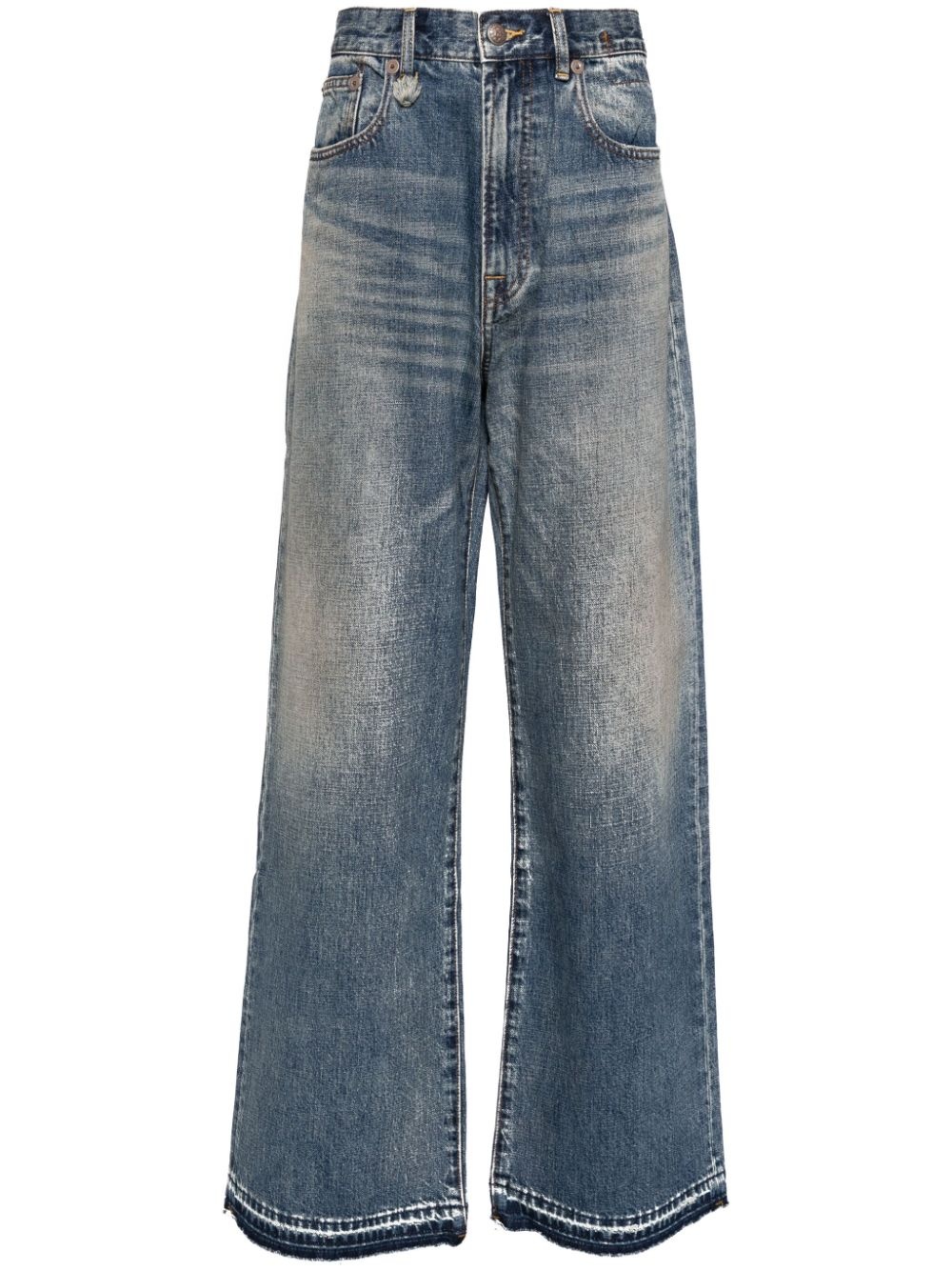 D'arcy loose jeans indigo blue cotton denim whiskering effect front button and zip fastening raw-cut finish classic five pockets straight leg Imported Composition Cotton 100%