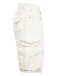 denim cargo shorts Highlights - White - Concealed fly and button fastening - Two rounded pockets to the sides - Multiple cargo pockets - Two rear flap pockets Imported Composition Fabric 100%
