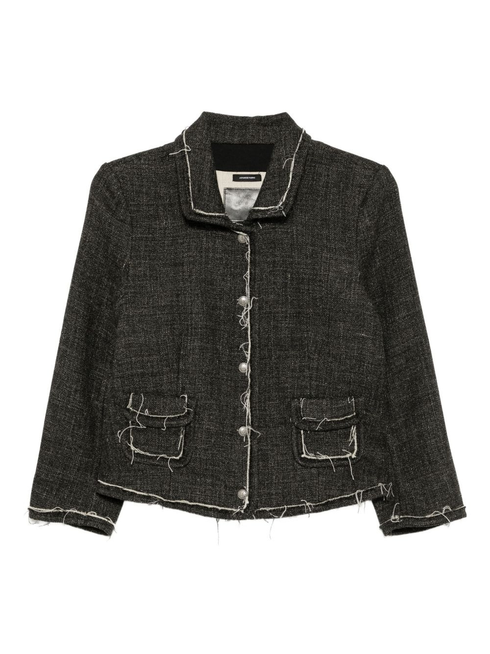 distressed boxy jacket Highlights - Dark grey - Front button fastening - Slip pocket to the front - Raw-cut edge Made in United States Composition Wool 80%, Linen/Flax 20% SIZE & FIT Model measurements Height 5 ft 10 in(1.77 m) Bust/Chest 30.31 in(77 cm) Hips 34.25 in(87 cm) Waist 25.19 in(64 cm) Measurement LENGTH 20.07 in(51 cm) WAIST 35.43 in(90 cm) BUST 36.22 in(92 cm) Shoulder Width 15.74 in(40 cm) FittingInformation Designed for a boxy fit, intended for a loose fit throughout Made from a midweight non-stretch fabric Washing instructions Dry Clean Only