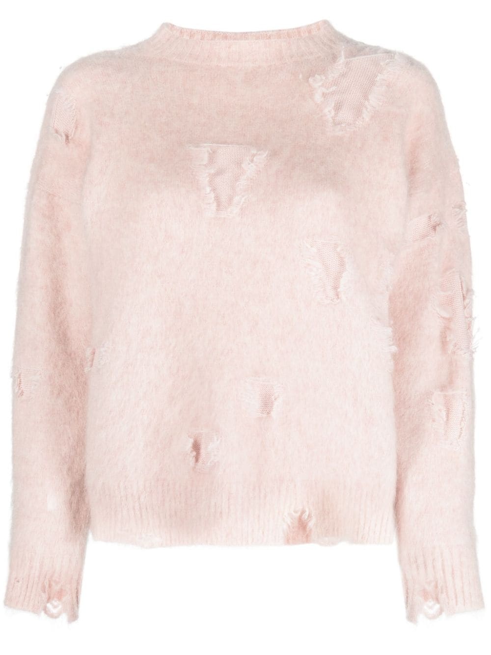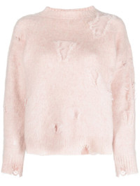 distressed crew-neck jumper Highlights - Light pink - Wool blend - Distressed effect - Ripped detailing - Crew neck - Long sleeves - Ribbed trim - Straight hem Imported Composition Kid Mohair 34%, Wool 34%, Polyamide 27%, Spandex/Elastane 5% SIZE & FIT Model measurements Height 5 ft 10 in(1.78 m) Bust/Chest 31.49 in(80 cm) Hips 35.03 in(89 cm) Waist 23.62 in(60 cm)