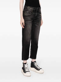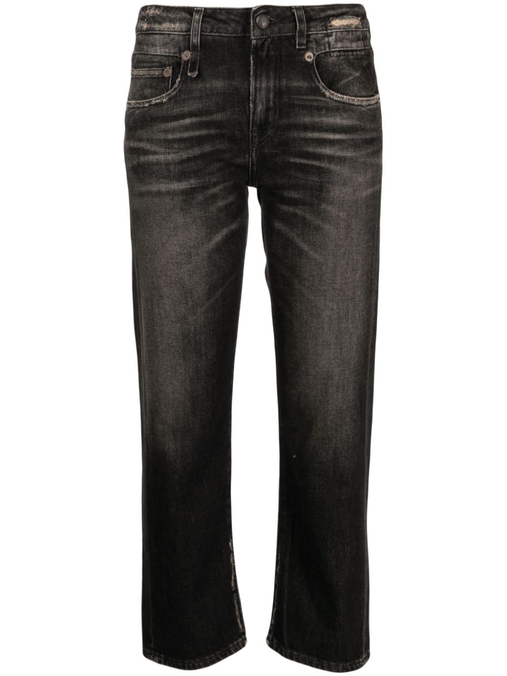 distressed-effect cropped jeans Cut to a relaxed straight-leg silhouette, these jeans are made from deep grey stretch-cotton. They showcase a distressed finish and cropped leg, reflecting R13's contemporary aesthetic. Highlights - Anthracite grey - Stretch-cotton - Denim - Distressed effect - Mid-rise - Belt loops - Concealed fly and button fastening - Classic five pockets - Straight leg - Cropped leg Made in Italy Composition Outer: Cotton 92%, Elastomultiester 8% Calf Leather 100% SIZE & FIT Model measurements Height 5 ft 10 in(1.78 m) Bust/Chest 29.13 in(74 cm) Hips 35.43 in(90 cm) Waist 23.62 in(60 cm) Measurement BACK RISE 12.59 in(32 cm) FRONT RISE 9.44 in(24 cm) Hem Width 7.67 in(19.5 cm) HIPS 37 in(94 cm) INSIDE LEG 25.19 in(64 cm) WAIST 29.92 in(76 cm) FittingInformation Designed for a straight-leg fit, these trousers allow for a close fit at the waist and an unrestricted, comfortable fit over the leg Cropped in length Constructed from stretch denim, this piece offers a stretch fit with durability This piece fits true to size – take your usual size