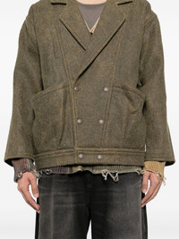 double-breasted blazer Highlights - Olive green - Wool blend - Front press-stud fastening - Panelled design - Two front patch pockets - Long sleeves Made in United States Composition Wool 79%, Polyester 21% SIZE & FIT Model measurements Height 6 ft 2 in(1.88 m) Bust/Chest 34.25 in(87 cm) Hips 34.64 in(88 cm) Waist 26.77 in(68 cm) FittingInformation Designed for a relaxed fit, this piece allows for comfort and movement when worn Made from a midweight non-stretch fabric