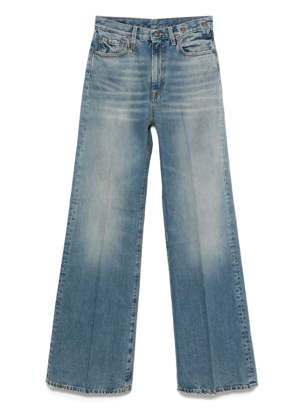 embroidered-pocket jeans Highlights - Merin blue - Faded wash - High waist - Five-pocket styling - Button fly Made in Italy Composition Lining: Polyester 65%, Cotton 35% Outer: Cotton 100%, Leather 100% SIZE & FIT Model measurements Height 5 ft 9 in(1.76 m) Bust/Chest 32.28 in(82 cm) Hips 35.43 in(90 cm) Waist 25.19 in(64 cm) Washing instructions Machine Wash