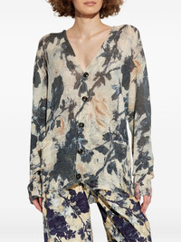 floral-print frayed cardigan Highlights - Black - Floral print - V-neck - Button fastening - Frayed edges - Long sleeves Imported Composition Linen/Flax 100% Washing instructions Read Manufacturer Guidelines