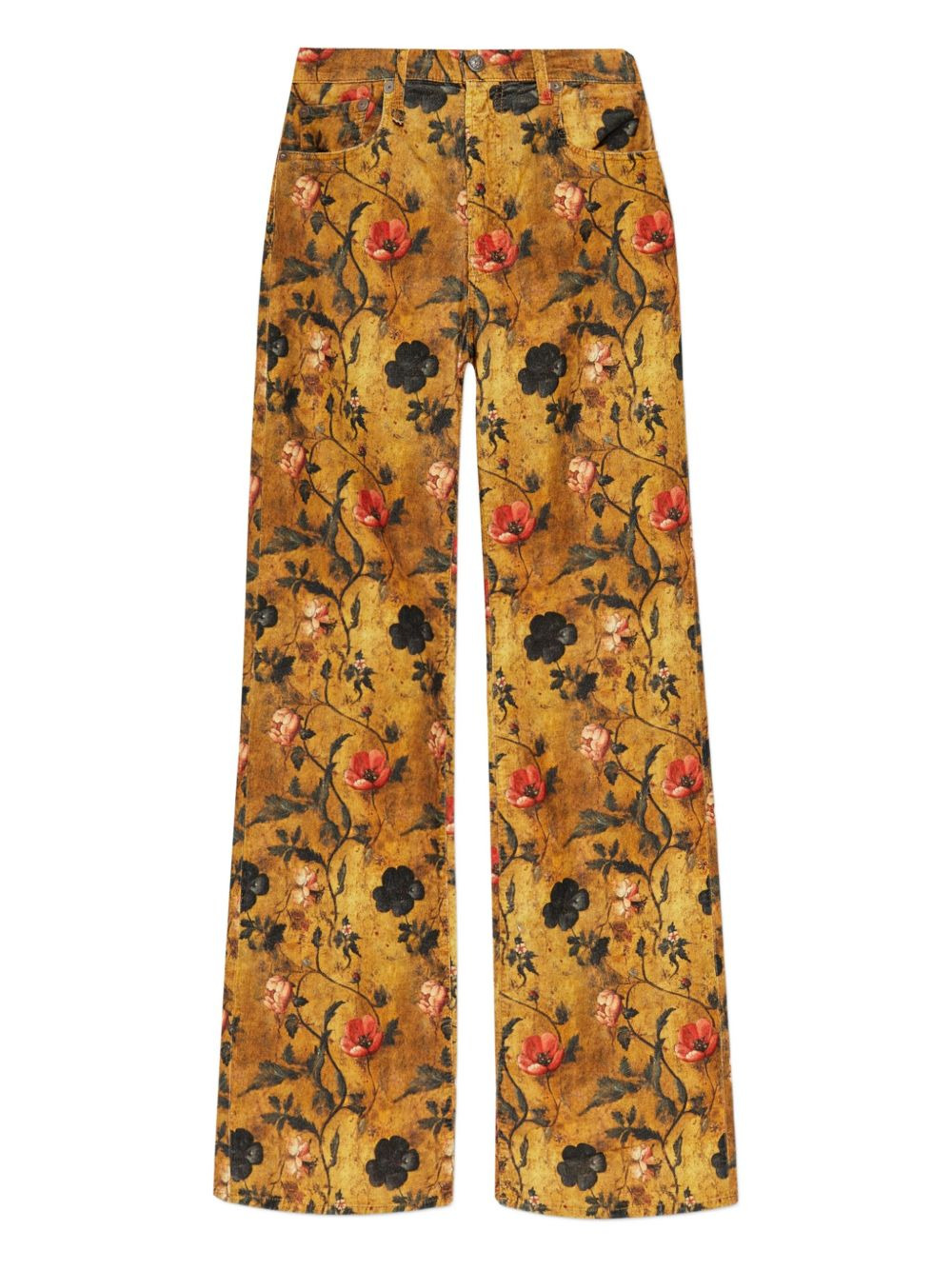 floral-print jeans Highlights - Yellow - Floral pattern - Five-pocket styling - Leather patch - Button fly - Straight leg Made in Italy Composition Cotton 100% Washing instructions Read Manufacturer Guidelines