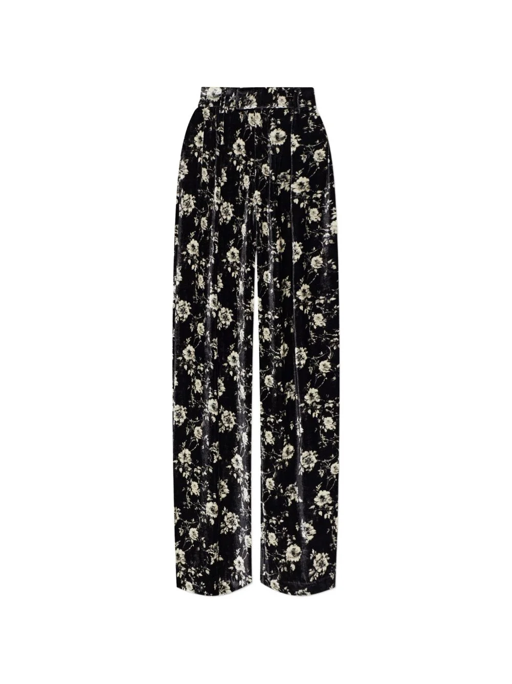 floral trousers Highlights - Black - Floral print - Wide leg - Pleated - Elasticated waistband Made in United States Composition Viscose 100% Washing instructions Read Manufacturer Guidelines