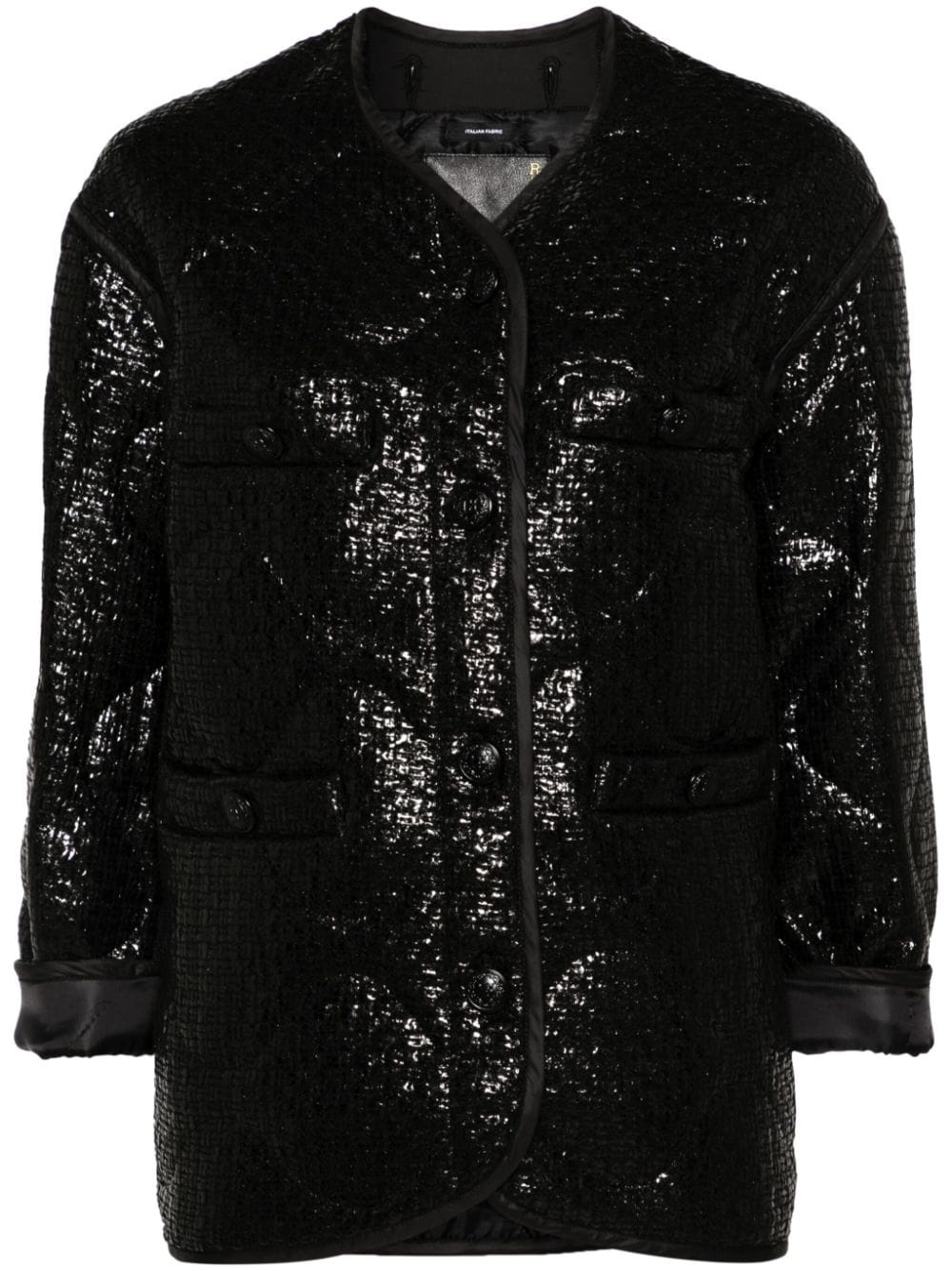 Gothic Liner jacket Highlights - Black - Padded design - Quilted - Tweed - Coated finish - Front button fastening - Round neck - Long sleeves - Cut-out detailing - Turn-up cuffs - Two chest welt pockets - Two front patch pockets - Full lining - Straight hem Made in United States Composition Outer: Polyamide 100%, Acrylic 80%, Wool 12%, Polyester 8% Lining: Polyester 52%, Cupro 48% SIZE & FIT Model measurements Height 5 ft 11 in(1.8 m) Bust/Chest 33.07 in(84 cm) Hips 37.4 in(95 cm) Waist 25.19 in(64 cm) FittingInformation Designed for a relaxed fit, this piece allows for comfort and movement when worn Made from a quilted non-stretch fabric, giving it no natural elasticity This piece fits true to size – take your usual size