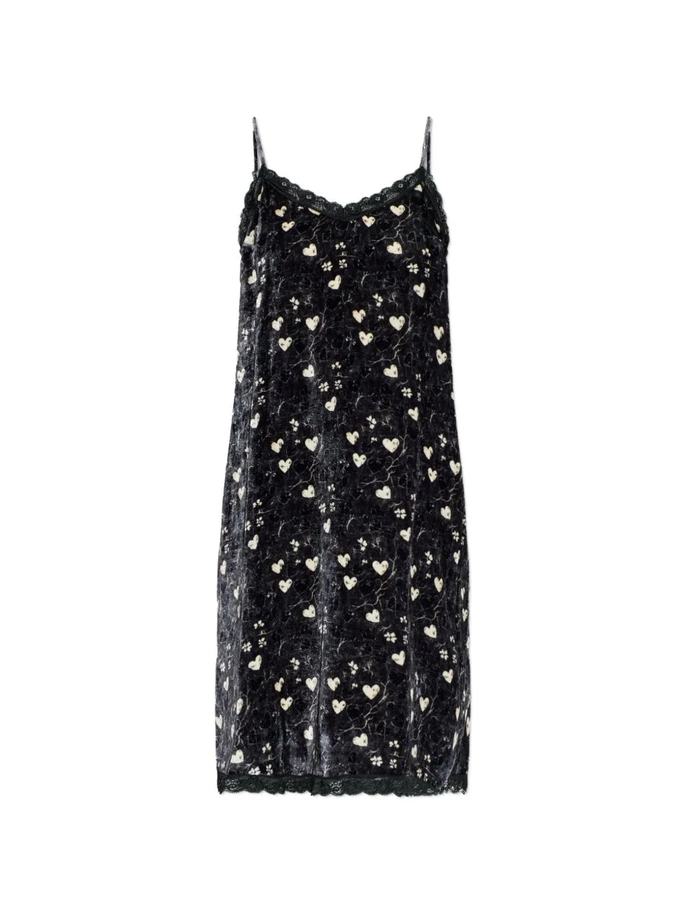 hearts lace dress Highlights - Black - Heart pattern - Lace trim - Thin straps Made in United States Composition Viscose 82%, Silk 18% Washing instructions Read Manufacturer Guidelines