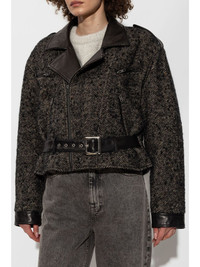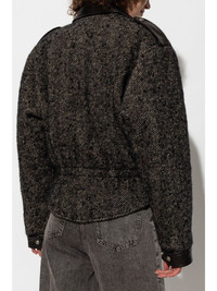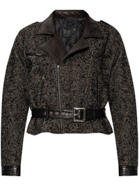 herringbone-pattern biker jacket Highlights - Black - Virgin wool blend - Herringbone pattern - Off-centre front zip fastening - Notched lapels - Epaulettes - Long sleeves - Two zip-fastening chest pockets - Two side zip-fastening pockets - Belted waist - Straight hem Made in United States Composition Virgin Wool 71%, Polyamide 19%, Mohair 7%, Polyester 3%