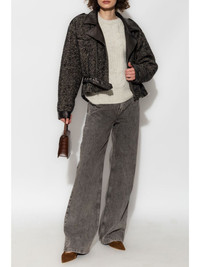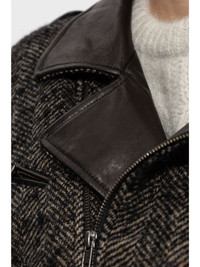 herringbone-pattern biker jacket