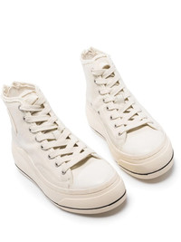 high-top platform sneakers Sitting atop a flatform rubber sole for a streetwear-inspired look, these ecru high-top sneakers are elevated with a zip fastening at the heel counter and seamlessly embody R13's innovative take on footwear. Highlights - Ivory white - Round toe - Rear zip fastening - Logo patch to the side - Front lace-up fastening - Platform sole Made in Italy Composition Canvas 100% SIZE & FIT Model measurements Height 5 ft 9 in(1.76 m) Bust/Chest 31.88 in(81 cm) Hips 33.07 in(84 cm) Waist 22.83 in(58 cm) FittingInformation This piece fits true to size. We recommend you get your regular size