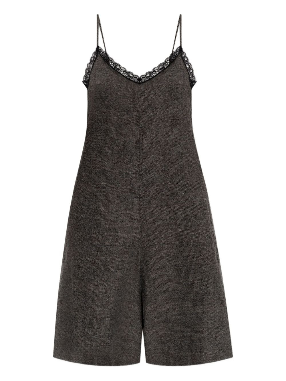 lace-trimmed wool playsuit Highlights - Dark grey - Wool - Lace trim - Sleeveless - Side inset pockets Made in Italy Composition Virgin Wool 100% Washing instructions Read Manufacturer Guidelines
