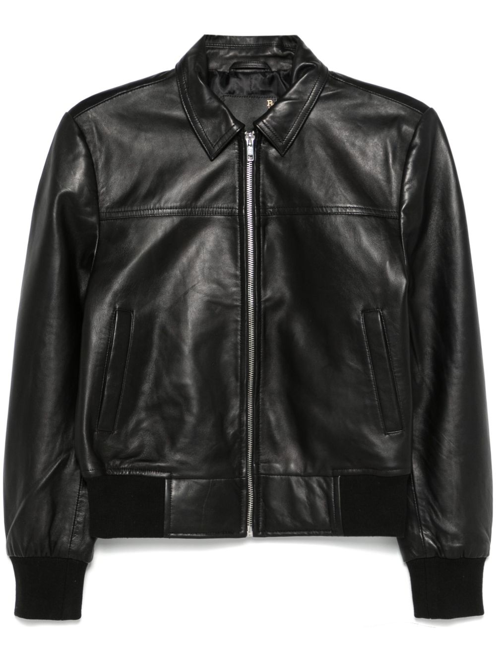 leather jacket Highlights - Black - Front zip fastening - Two side welt pockets - Ribbed cuffs and hem - Polo collar Imported Composition Leather 100% SIZE & FIT Model measurements Height 5 ft 9 in(1.76 m) Bust/Chest 32.28 in(82 cm) Hips 35.43 in(90 cm) Waist 25.19 in(64 cm) FittingInformation Designed for a slim fit that sits just away from the body offering a close yet comfortable fit The elasticated waist allows for a comfortable fit Soft leather has a supple and smooth construction offering some flexibility Measurement SLEEVE LENGTH 22.51 in(57.2 cm) LENGTH 20 in(50.8 cm) WAIST 32 in(81.3 cm) BUST 34.01 in(86.4 cm)