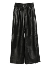 WIDE LEG LEATHER PANT WITH TRAPUNTO STITCHING