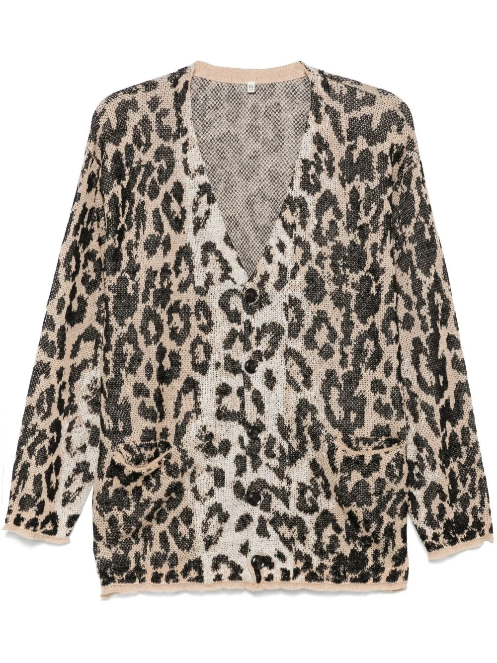 leopard-jacquard cardigan Highlights - Light brown - Front button fastening - Two front patch pockets - V-neck - Long sleeves Imported Composition Linen/Flax 100% Washing instructions Hand Wash