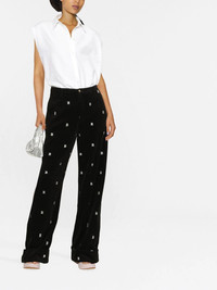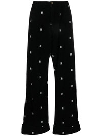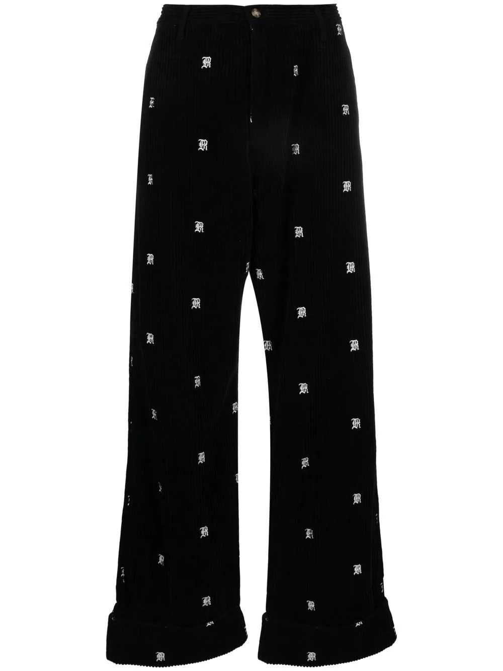 logo-embroidered corduroy trousers R13's urban streetwear style is embodied in the relaxed silhouette of these trousers, embellished all over with the brand's embroidered logo. Imported Composition Cotton 100% SIZE & FIT Model measurements Height 5 ft 10 in(1.78 m) Bust/Chest 30.31 in(77 cm) Hips 36.61 in(93 cm) Waist 24.8 in(63 cm) Measurement FRONT RISE 12.59 in(32 cm) HIPS 44.09 in(112 cm) WAIST 31.49 in(80 cm) FittingInformation This piece fits true to size. We recommend you get your regular size Designed to be fitted at the waist and hips, loose over the leg Made with a mid-weight non-stretch fabric Washing instructions Machine Wash