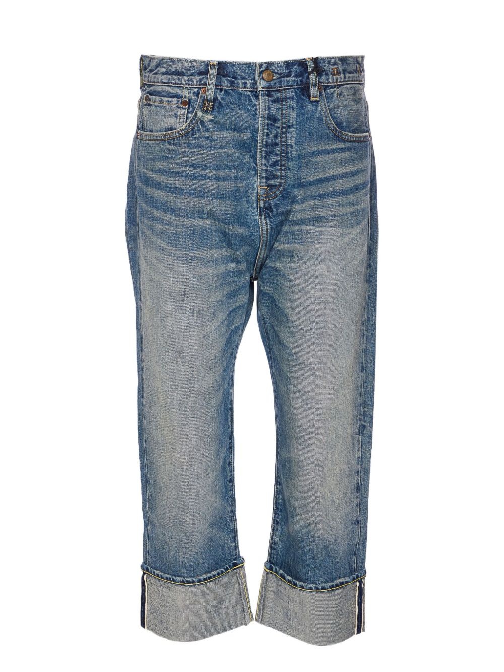 logo-patch cuffed jeans Highlights - Blue - Button fastening - Five pockets - Patch logo - Cuffed hems Imported Composition Cotton 100% Washing instructions Read Manufacturer Guidelines